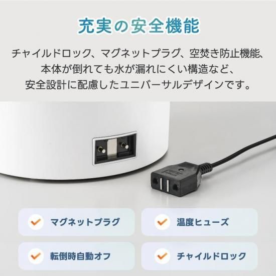空焚き防止機能、温度ヒューズ、転倒時自動オフスイッチ、チャイルドロック |