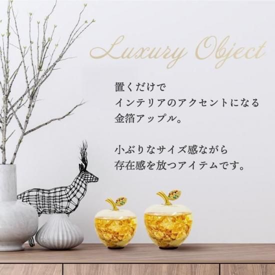 ・ 小ぶりながらも金箔の輝きが空間を華やかに彩ります。高級感あふれるアップル型デザインで、リビング・玄関・寝室など、どんなシーンにも映えるインテリアオブジェです。
