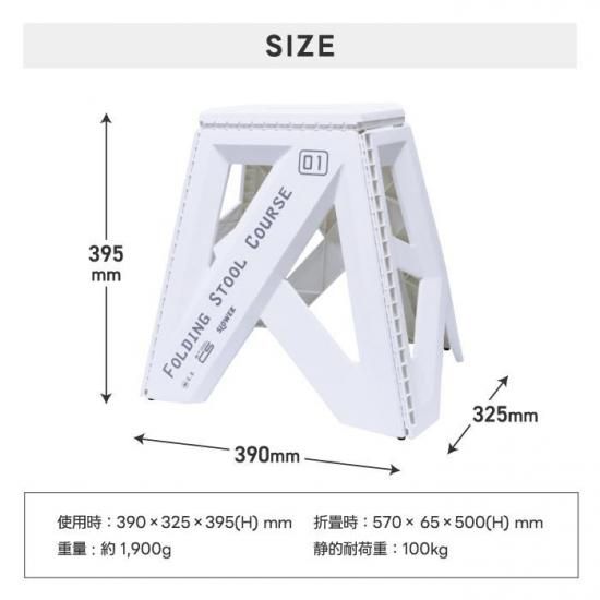 ・ 約1.9kgと軽量ながら、耐荷重は100kg!持ち運びやすく、安心して座れる強度を実現。
