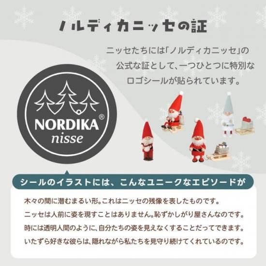・ 「ノルディカニッセ」の証として、すべての人形に特別なロゴシールを貼付。コレクションアイテムとしても人気。
