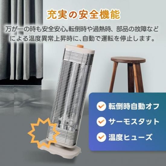 A4. 転倒時自動オフスイッチ、温度ヒューズ、サーモスタットを搭載した安心設計。転倒や過熱時は自動で電源が切れるため、お子様やペットのいるご家庭でも安心して使用できます。