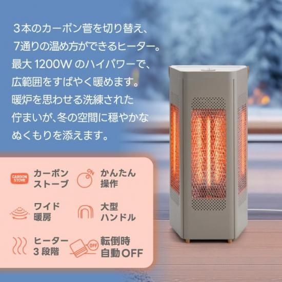 スリーアップ THREEUP トライアングルヒーター WOOD STYLE CBT-2515 3面カーボンヒーター 速暖 省エネ 転倒オフ おしゃれ 木目調 ストーブ 遠赤外線 暖房器具