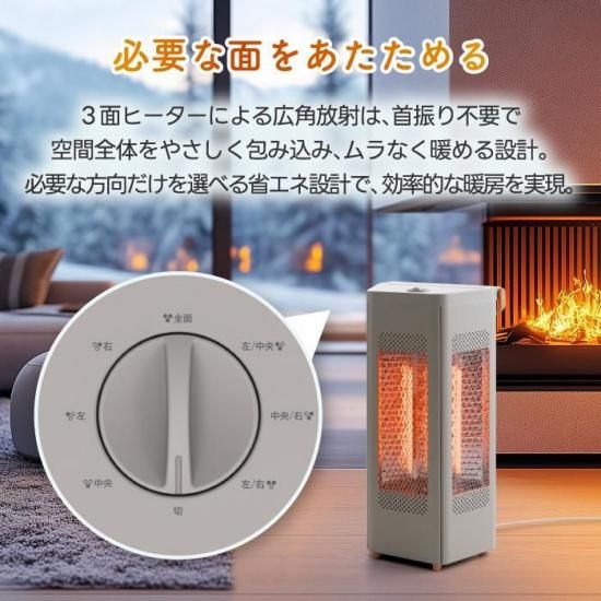 選べる暖かさでじんわりと包み込む3面ストーブ