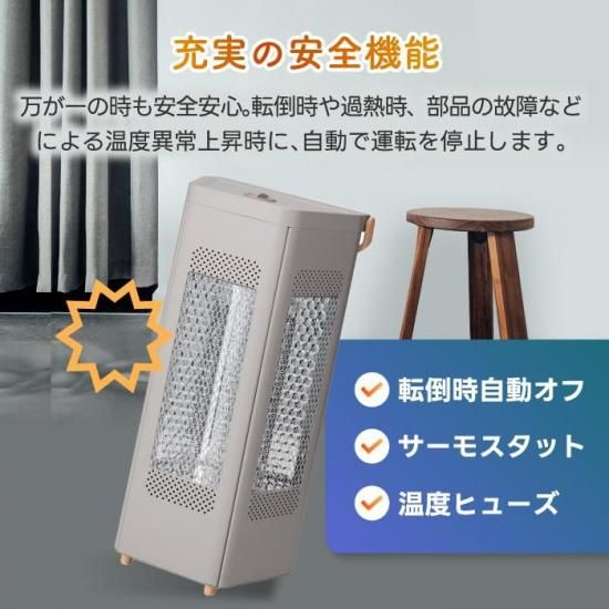 ・ 転倒時自動オフスイッチ・温度ヒューズ・サーモスタット搭載で安心設計。