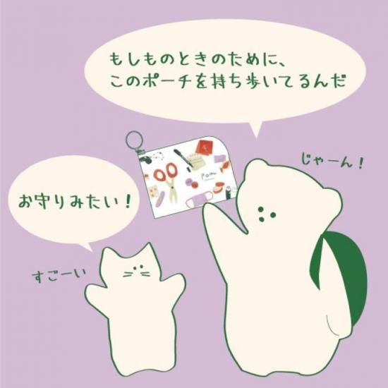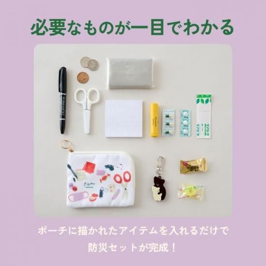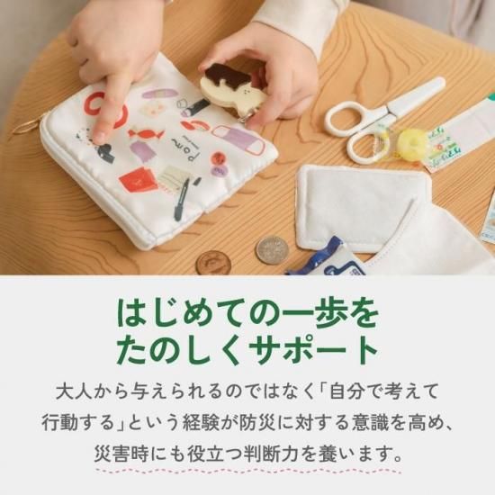 【防災士監修の“がんばらない防災”】 ・ “もしもの時”に備えながら、普段使いもできる「0次の防災」シリーズ。 ・ 防災士と一緒に考えた、家族みんなが自然に防災意識を持てるおまもり雑貨。 ・ 「かわいいけど実は防災グッズ」というコンセプトで、毎日の生活にすっとなじみます。 【いつものバッグに“ちょい足し”できる安心】 ・ 軽くてコンパクトだから、カバンやランドセル、通勤バッグにもぴったり。 ・ いつでもどこでも持ち歩ける防災グッズとして活躍します。 ・ 旅行やお出かけ、通学・通勤のお供にも◎。 【ティッシュケース付きポーチで実用的】 ・ 外出先でのちょっとした汚れや涙拭きにも便利なティッシュポケット付き。 ・ 内側には細かいアイテムを分けて収納できるスペース付き。 ・ 薬・絆創膏・常備薬・連絡メモなど、いざという時の“お守りセット”を入れておけます。 【かわいくてやさしいデザイン】 ・ 柔らかなカラーと温もりあるイラストが特徴のPomデザイン。 ・ 「真っ黒や赤は使わない」「安全を意味するグリーンを基調」としたやさしいトーン。 ・ 子どもから大人まで、幅広い世代に選ばれるユニバーサルデザインです。 【贈り物にもぴったり】 ・ お子さま・おじいちゃんおばあちゃんへのプレゼントにも◎。 ・ 「かわいいのに防災に役立つ」ギフトとして人気上昇中。 ・ 防災の日、入学・進学祝い、母の日・父の日ギフトにもおすすめです。