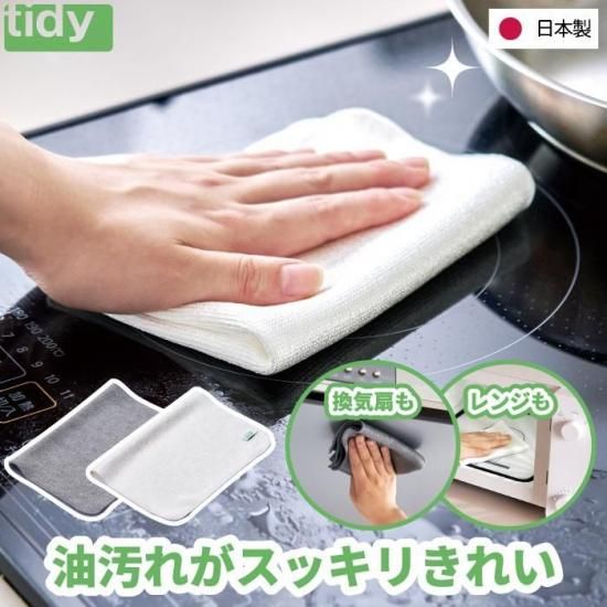 【日本製】tidy オイルクリーンクロス 水だけで落ちる 油汚れ用キッチンダスター 洗剤不要 マイクロファイバー キッチン掃除グッズ