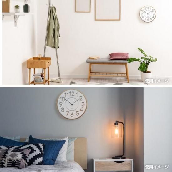 ・ マットホワイトの文字盤×木素材の組み合わせが上品で、北欧・ナチュラル・モダンどんな部屋にも馴染むデザイン。