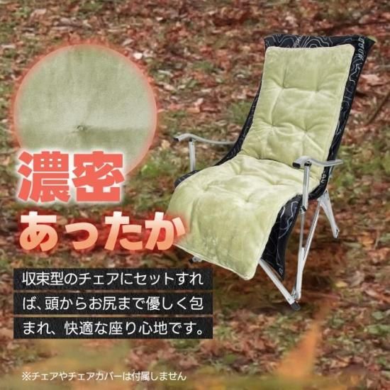 A6. フィールドア、ヘリノックス風の収束型チェアや、一般的なキャンプチェアにセットできるサイズです。頭から背中、腰、お尻までをふんわり包む快適仕様です。