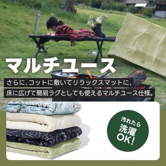 A1. キャンプ、焚き火チェア、コット用マット、簡易ラグ、車中泊マットなどマルチに使える「アウトドア用マットクッション」です。屋内のリラックス用にも最適です。