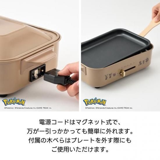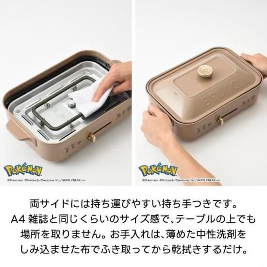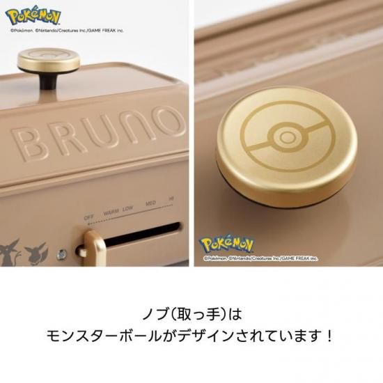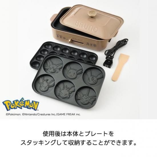 【イーブイたちの6種パンケーキが焼ける特別プレート】 ・ イーブイ+進化形のかわいいミニパンケーキが6種類焼ける限定デザイン ・ 子どもから大人まで楽しめる“映える”朝食&おやつタイムに 【BRUNO人気No.1!2〜3人に最適なコンパクトサイズ】 ・ 定番の平面プレートとたこ焼きプレートつき ・ 毎日のごはんから週末のパーティーまで幅広く活躍 【テーブル映えする鋳物ホーロー風の美しいデザイン】 ・ 食卓に出しっぱなしでもかわいい、BRUNOならではの上質感 ・ モンスターボールデザインのデコレーションノブがアクセント 【簡単操作&高火力1200W】 ・ 温度調節はダイヤルで簡単 ・ 焼く・煮る・炒める・温め直しまで1台でOK 【プレート取り外し式でお手入れラクラク】 ・ ふっ素コート仕様でこびりつきにくい ・ プレートは取り外せて洗いやすく、いつでも清潔に保てます
