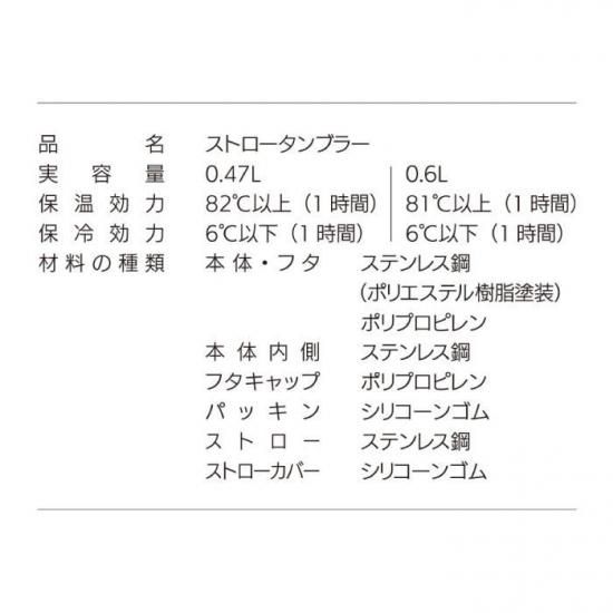 Q1. 保温・保冷力はどれくらい持続しますか? A1. 真空二重構造により、保温81℃以上/保冷6℃以下(いずれも1時間保持)が可能です。仕事中のドリンク、朝のコーヒー、氷ドリンクなどを「飲み頃温度」で長時間楽しめます。 Q2. 飲み口(ストロー)はどんな素材ですか? A2. 口あたりの良いステンレス製ストローを採用。ストローカバーも付いているので衛生面も安心。プラスチック臭がせず、温かい飲み物・冷たい飲み物どちらも快適に味わえます。 Q3. 飲む時にフタが邪魔になりませんか? A3. キャップを外すと自動でポップアップする設計と、キャップホルダー付きで落とさず固定できます。走行中の車内や作業中でも片手で扱いやすい点が好評です。 Q4. どれくらいの容量が入りますか? A4. 実容量は0.6L(600ml)。たっぷり入り、スポーツ・デスクワーク・在宅勤務・学校・アウトドアなど、こまめに水分補給したい方に最適です。 Q5. 結露や外側の熱さは気になりますか? A5. 真空断熱構造のため熱が外へ伝わりにくく、表面が熱くなりづらい設計です。また、冷たい飲み物でも結露が発生しにくく、机やバッグが濡れる心配も軽減できます。 Q6. 手入れはしやすいですか? A6. シンプルなパーツ構成で分解しやすく、内部も洗いやすい形状です。ストローまでステンレス製で耐久性も高く、衛生的に長く使えます。 Q7. 車やアウトドアでも使えますか? A7. 高耐久パウダーコーティング外面で傷がつきにくく、アウトドア・キャンプ・車での使用にもおすすめ。ドリンクの温度維持や衛生性、扱いやすさから普段使いにも抜群です。 Q8. ギフトにも向いていますか? A8. シンプルで洗練されたデザイン、保温・保冷性能、ステンレスストロー付きという高機能性から、誕生日、父の日・母の日、入学祝いや新生活ギフトにも喜ばれます。色展開も豊富なので贈りやすいアイテムです。